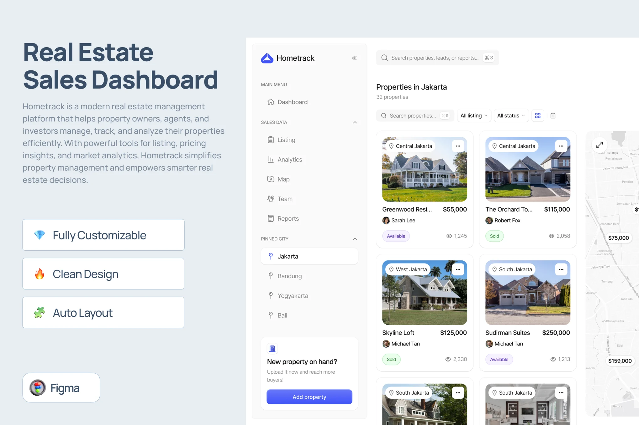 طرح گرافیکی داشبورد املاک عالی برای ساخت داشبورد مدیریتی املاک، پنل ادمین آژانس املاک، CRM فروش ملک، داشبورد پروژههای ساختمانی، سیستم مدیریت مشاوران و پروژههای real estate dashboard، property management admin است.